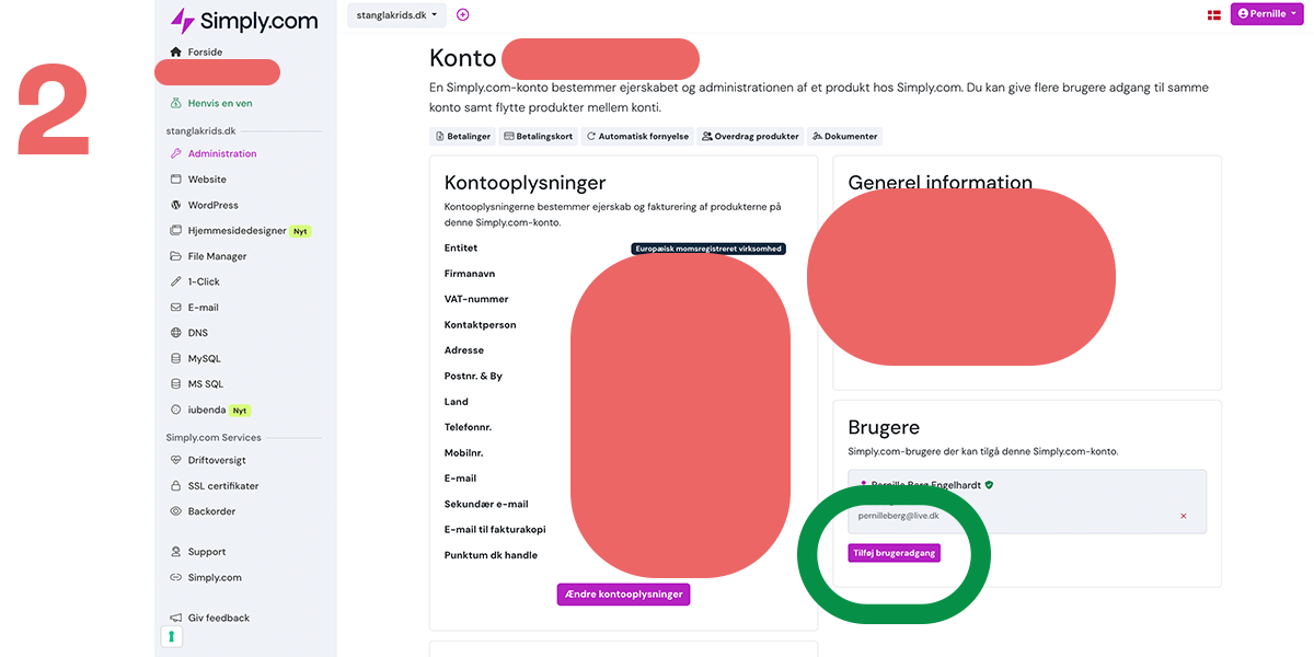 Tilføj brugeradgang – Klik på Tilføj brugeradgang (markeret med den grønne ring på billede 2)